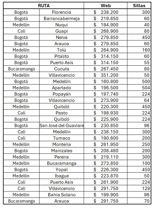 * La tarifa anunciada como 160.800 corresponde al trayecto Bogotá-Medellín.