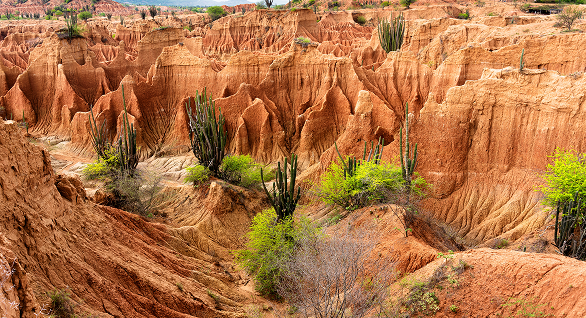 La Tatacoa no tiene dunas. No hay camellos. Y tampoco es, técnicamente, un desierto. Es un bosque seco tropical transformado por siglos de viento, sol y silencio. Lo que sí tiene: paisajes que parecen de otro planeta, cañones rojizos, zonas grises, fósiles y uno de los cielos nocturnos más despejados del país.